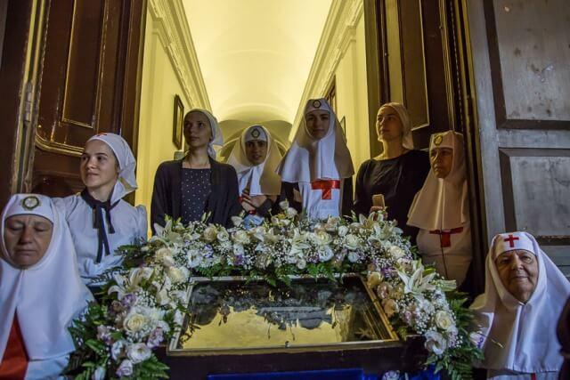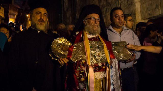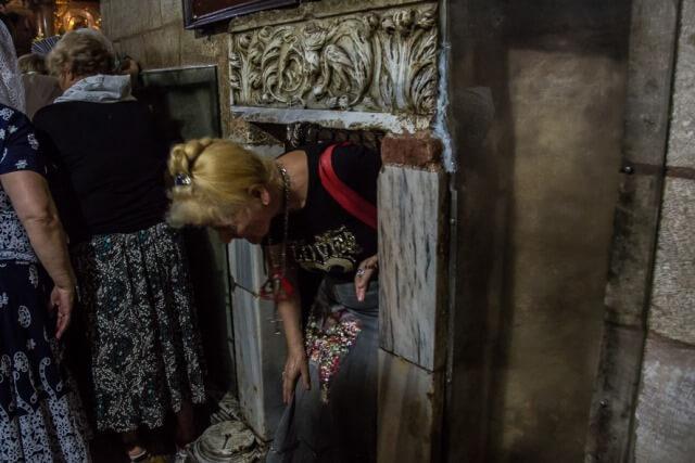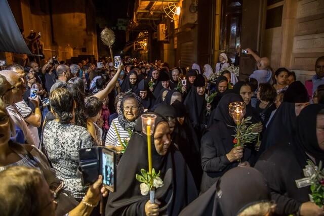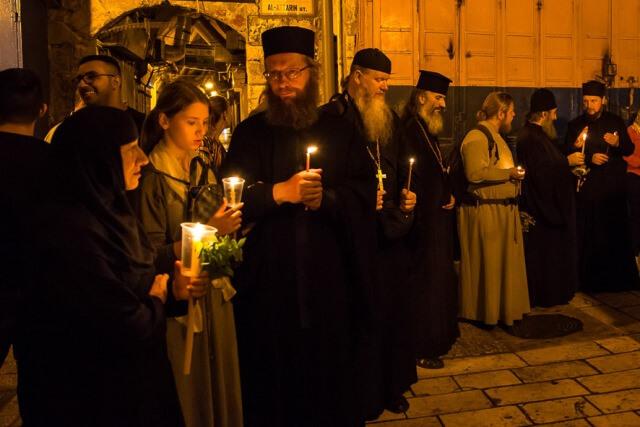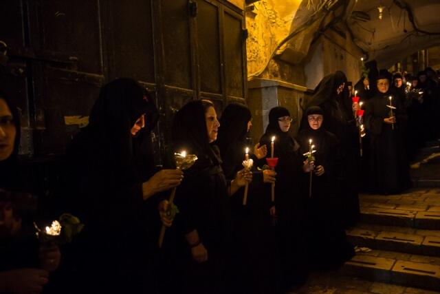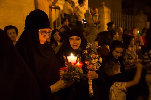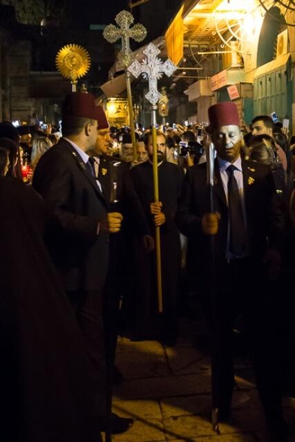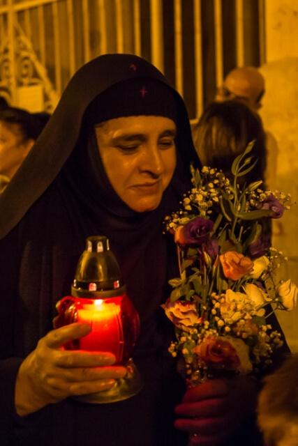 התהלוכה עוברת לאורך הויאה דולורזה, עד ליציאתה את שער האריות עם עלות השחר. ומגיעה לקבר מרים. אב המנזר מניח את האיקונה על דוכן מיוחד הניצב מאחורי הקבר. קהל המאמינים נכנס לקבר, מדליק מאות נרות על המדרגות המובילות לקבר, ועל עמדות יעודיות. המאמינים זוחל מתחת לדוכן, נכנס לתוך האדיקולה, מנשקים את האיקונה, ויוצאות החוצה.