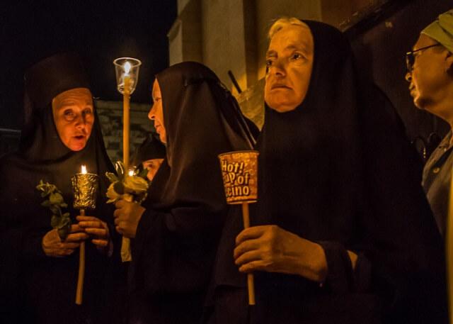 בתום הטקס יוצא קהל המאמינים, ומקיף את הגן בתהלוכה עם נרות, וצועדים לאחר פסל הבתולה. בסיום התהלוכה, נכנס הקהל לכנסיית גת שמנים, בכנסייה ניצב פסל גדול של מרים, המוקף בנשים הנושאות לפידים. הקהל פותח בתפילה לאור נרות, ובסיומה מסתיים הטקס.