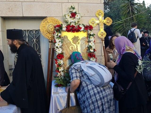 המכובדים נכנסים לכנסייה לתפילה של מספר דקות ולהצבת האיקונה בעטרה על הקיר הצפוני של הכנסייה. בתום התפילה עוזבים אנשי הדת את הכנסייה והמאמינים נכנסים ועוברים על פני האיקונה ומנשקים אותה.