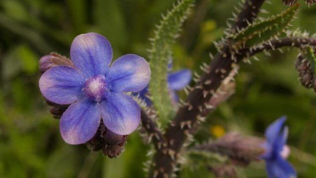 בתוך הצינור חבויים 5 אבקנים. לפרח שחלה תחתית ומוארכת. הצינור נתון בגביע קצר בעל 5 אונות מאוחות. הפרחים סדורים בתפרחות דלילות על גבי עמוד הפריחה שגבהו כ-130 ס"מ. העלים משתפלים משולי הגבעול, וכל חלקי הצמח מכוסים בזיפים הקוצניים.