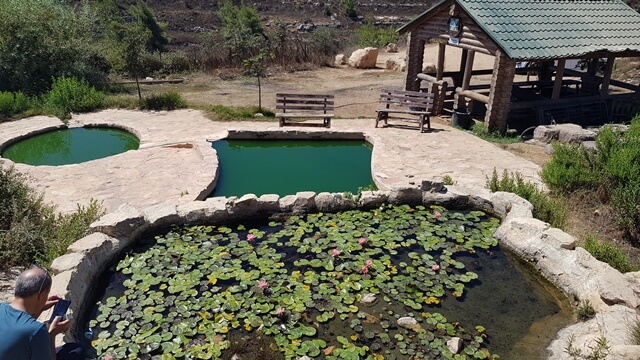 מהבריכה הרדודה המים זורמים בקילוח דק לשתי בריכות נוספות המקושרות בינהן בתעלה קטנה.