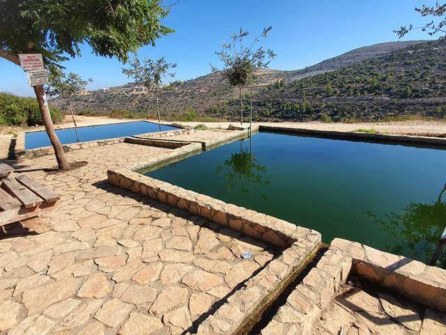 אזור הבריכות מרוצף ובמקום מוצבים מספר שולחנות קק"ל.
