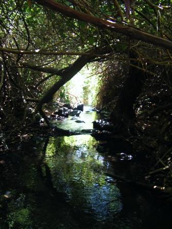 מכאן יש להמשיך על דרך העפר ולעבור את האיקליפטוס, לחצות את הדרך עם המים, ולאחר כמה עשרות מטרים בפיצול השבילים ללכת על השביל הפונה שמאלה ולרדת למים, ומכאן הגעתם לתחילת המסלול של הזאכי.
