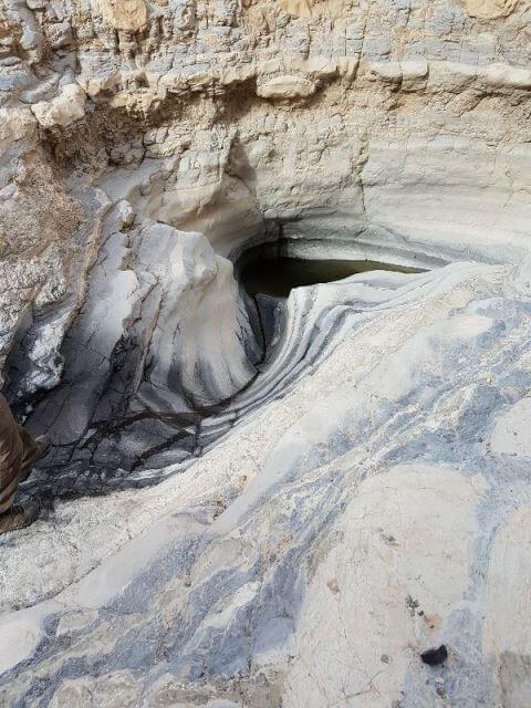 מבט אל סלעי הגיר הקשים ממחיש לנו את משמעות המושג 'מצוק ההעתקים': סלעי הגיר הקשים הבונים את מצוקי המדבר צנחו כאן בעקבות השבר הסורי-אפריקאי, לעומק 300- מ'. הגבעות העגלגלות שאנו מטיילים עליהם, הם משקעי שלבים קדומים של ים המלח (ימת הלשון) המונחים עליהם.