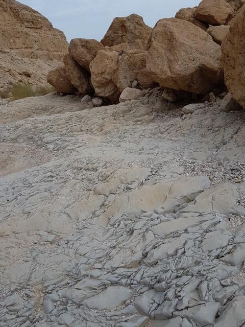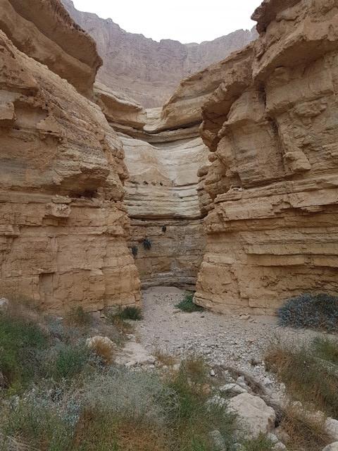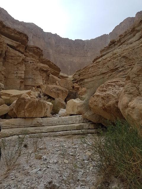 תוואי הדרך ממשיך בתוך הערוץ ובחלקו זרוע בולדרים. בחלוף כ-900 מטר מגיעים למפל הראשון הגדול גובהו כ-30 מטר. עשרות מטר לפני המפל עוזבים את הערוץ ומעפילים אל הרכס מדרום.
