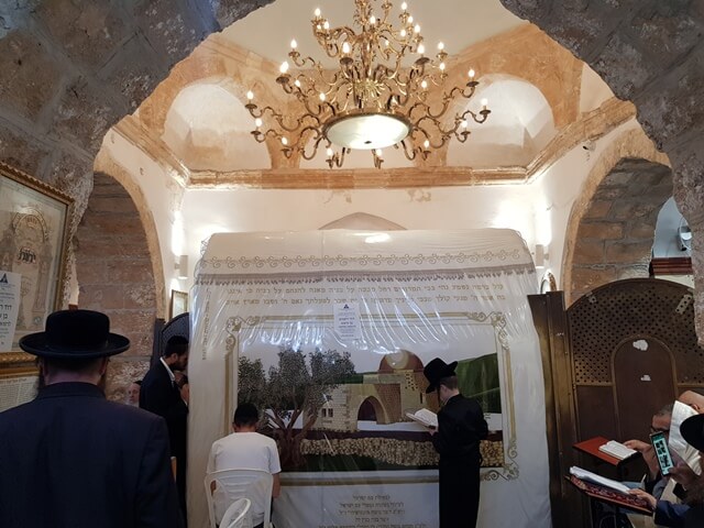 אם הכנסכם למבנה בצד ימין מצוי בית כנסת (פינת השתיה בסמוך). מדלת הכניסה תעברו במסדרון המשמש את המתפללים ולקראת סופו בצד ימין מצוי ארון הקודש. משמאל תימצא הנפש לרחל מכוסה בפרוכת לבנה.