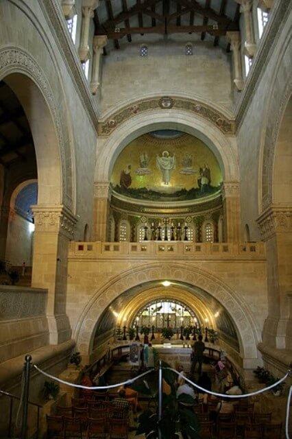 אור זהוב חודר אל הכנסיה מבעד לחלונות ויטראז’ ומעניק זוהר שמטרתו להזכיר את פניו הקורנים של ישו בעת אירוע ההשתנות. הכנסיה בנויה כבזיליקה בעלת אולם תווך ושתי סיטראות לצדדיו, אך האפסיס שלה (הגומחה המסמנת את כיוון התפילה בקיר המזרח) נחלקת באופן ייחודי לשתי קומות. פסיפס המתאר את מעמד ההשתנות מתנוסס על קיר האפסיס.